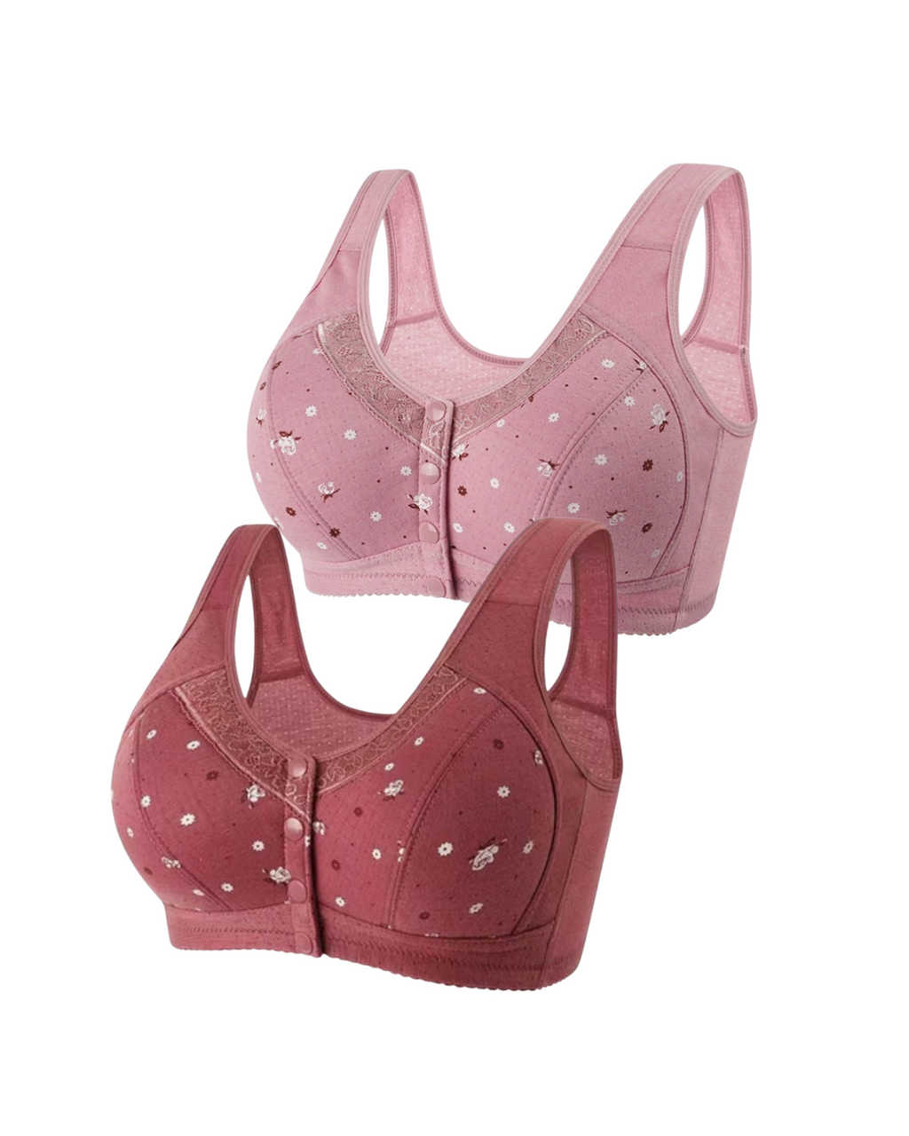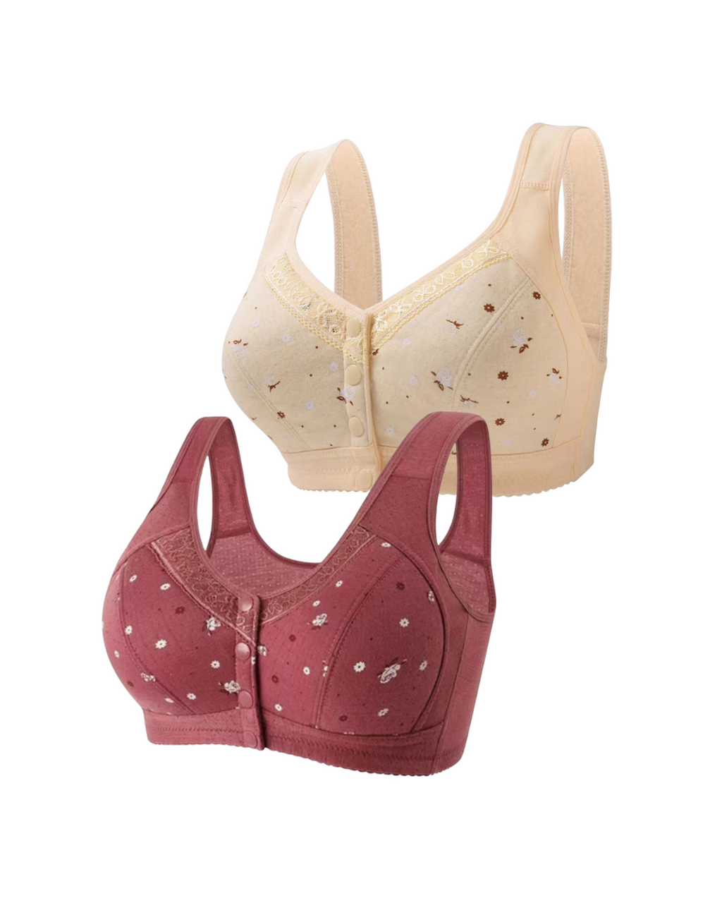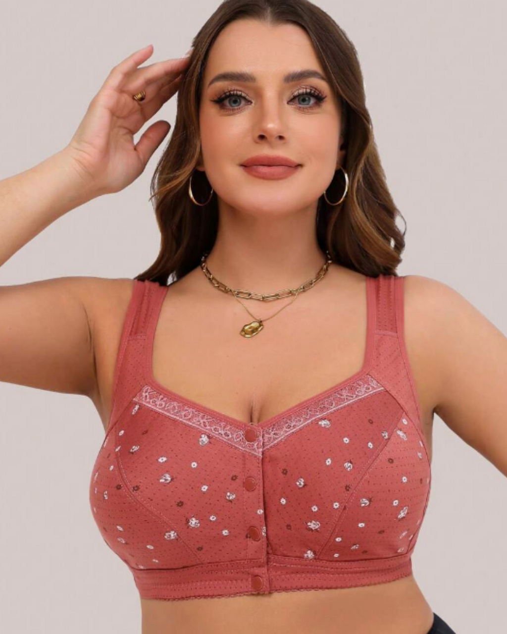 O sutiã reforçado botão frontal foi confeccionado com design exclusivo, não possui ferros, arames e fechos que incomodam, machucam e pinicam a pele. Possui tecido de poliéster e algodão respirável, deixando-a seca e confortável o dia todo.